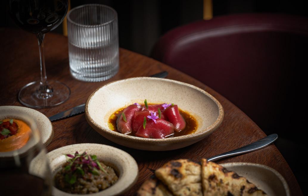 The menu champions’ seasonality, with dishes designed to be shared. Starting with a selection of snacks including Claro’s signature Frena bread with matbucha, labneh, spicy zhug and olives or Fried brussels sprouts with caper aioli.