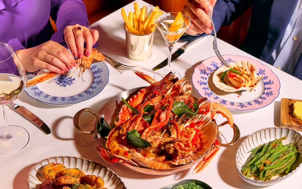 The dining room, known for nearly a century as a stage for London’s grand dining tradition, has been reimagined with modern theatre and flair. Guests can expect chandeliers, Bentley leather banquettes, and the buzz of an open kitchen, with chefs finishing plates at the counter and trolleys gliding through the room.
