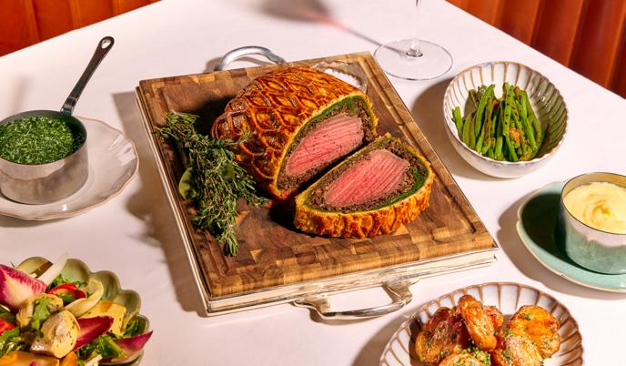omelette Arnold Bennett. Sundays deliver tradition with a roast and a dessert trolley laden with British favourites like baked Alaska, Sherry trifle, and a signature chocolate mousse.