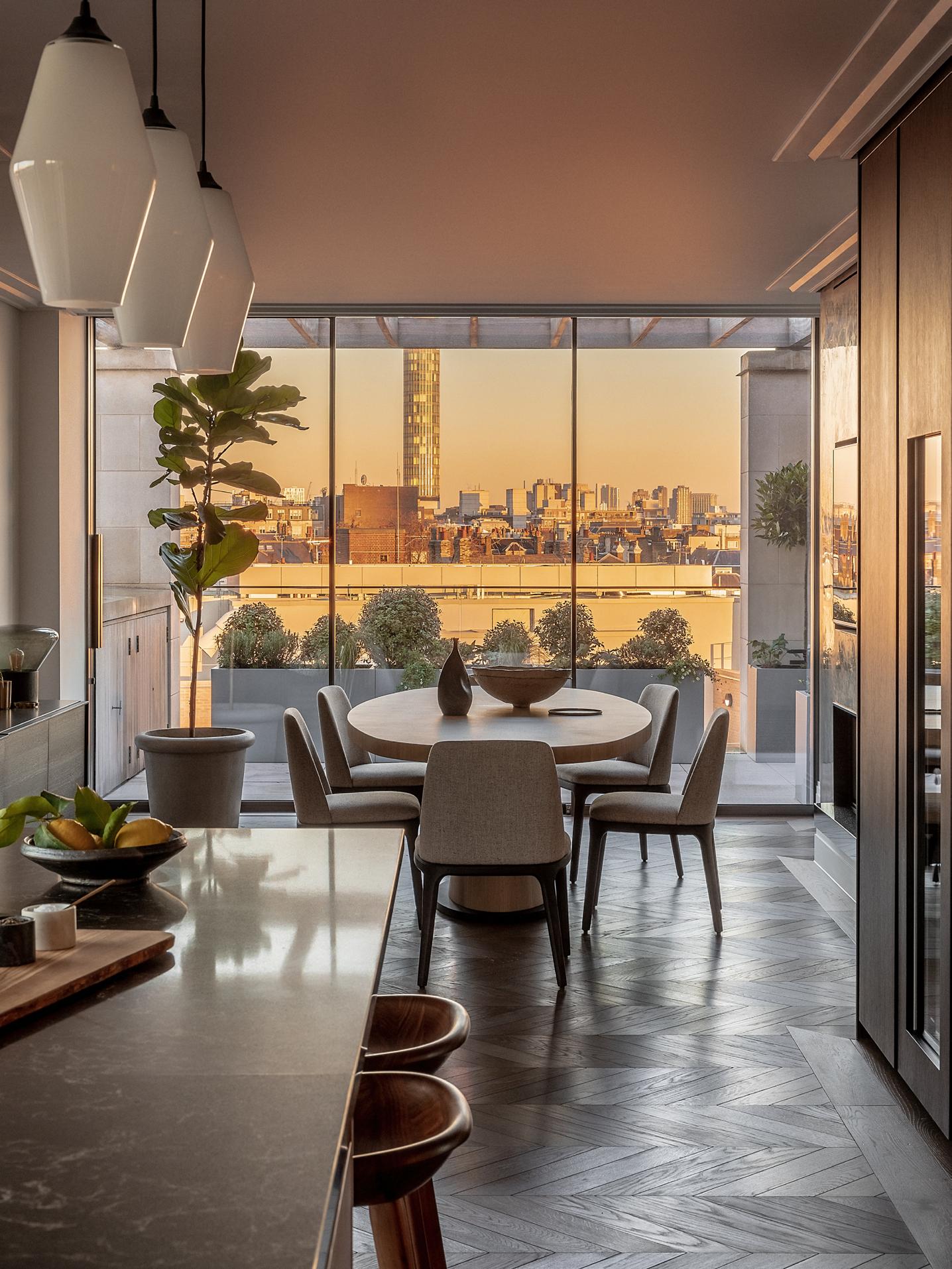 The contemporary exterior and interior have been married in both tone and design, with the blend of high-quality slate and textured stones of the outside being mirrored indoors, with natural woods and warm Scottish tweeds and wools creating an elegant and comfortable atmosphere.