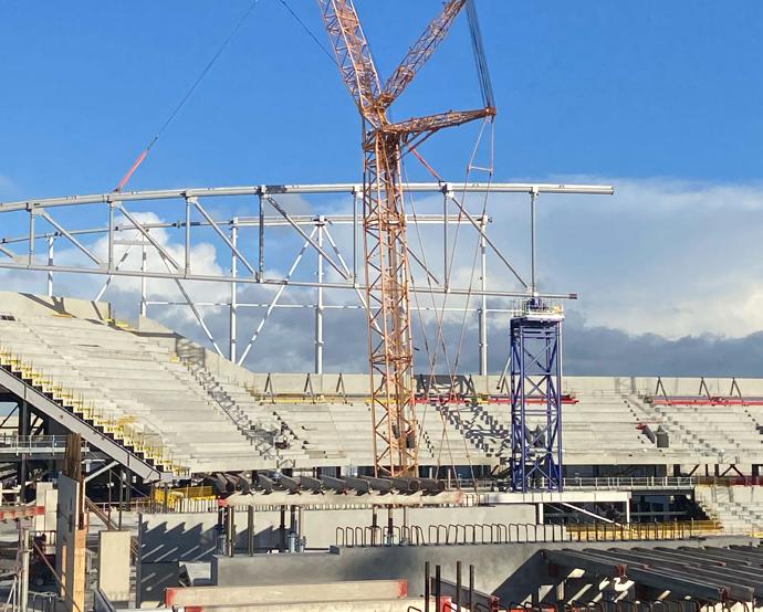 The completed roof trusses will have clear spans of between 150 and 175 metres, once the temporary support trestles are removed. The depth of the trusses varies between four metres deep at the supports, to around 11.5m at mid-span.