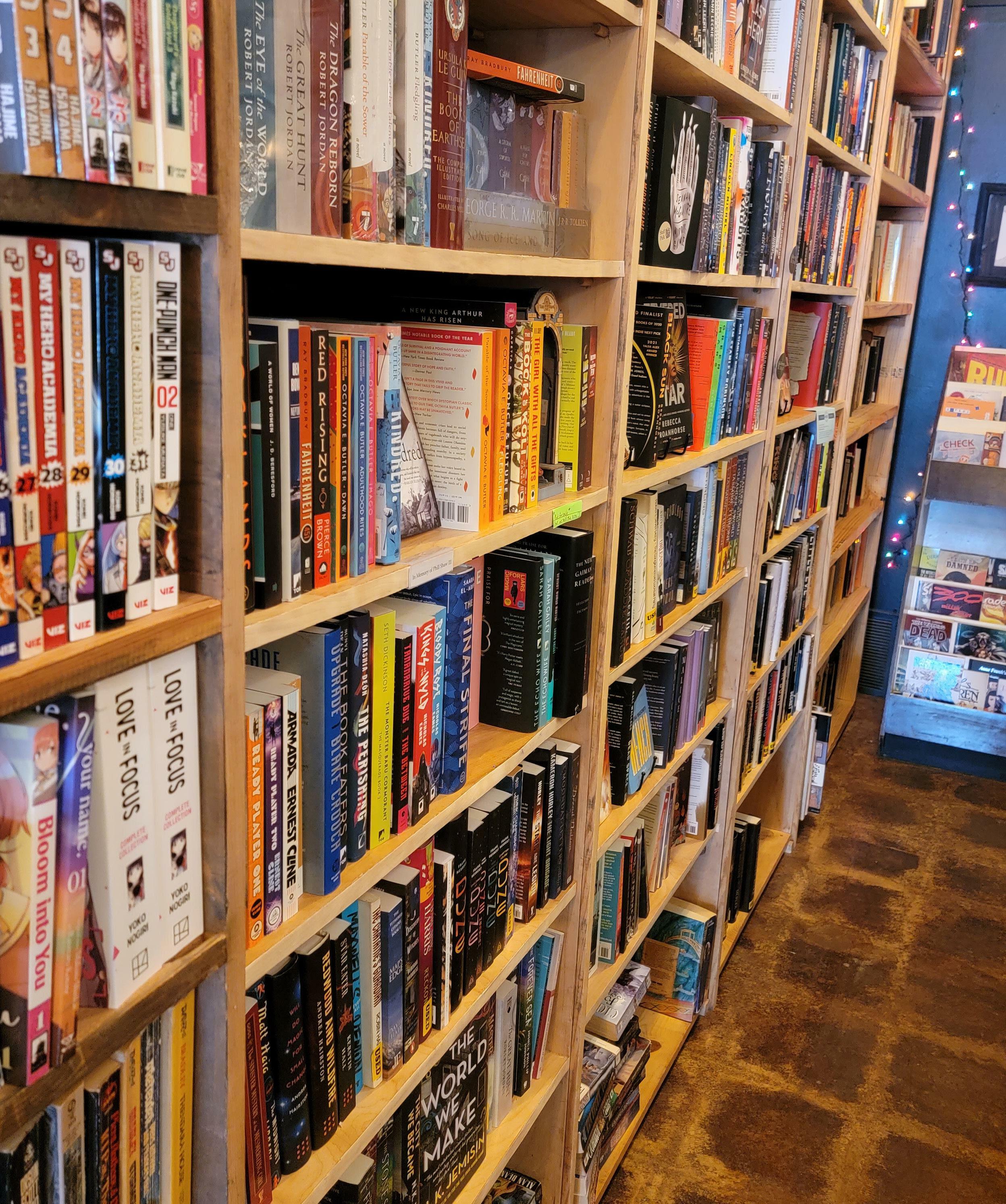 Rogues Gallery had boasted in-store gaming services, but were forced to suspend such operations. Since then, they have had to replace the in-store gaming area with products in order to save space. However, they were able to stay in business despite the lack of physical gaming space services. “We thankfully have a very loyal customer base that wants to support us, and that was even more true during and after COVID,” says Lander. While Alisha was not part of Reverie Books during the beginning of the pandemic, her addition to the Reverie team was valuable. “This store was already a great place to come to, an extra set of dedicated hands just makes it even more so,” she says.