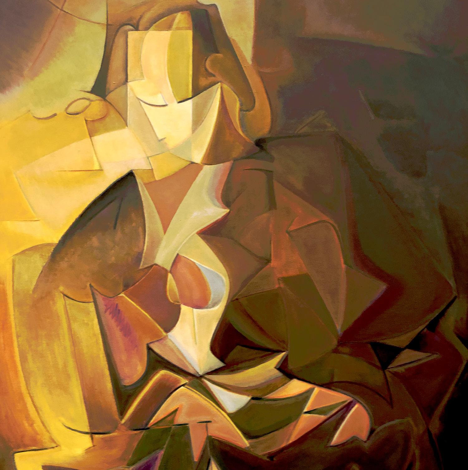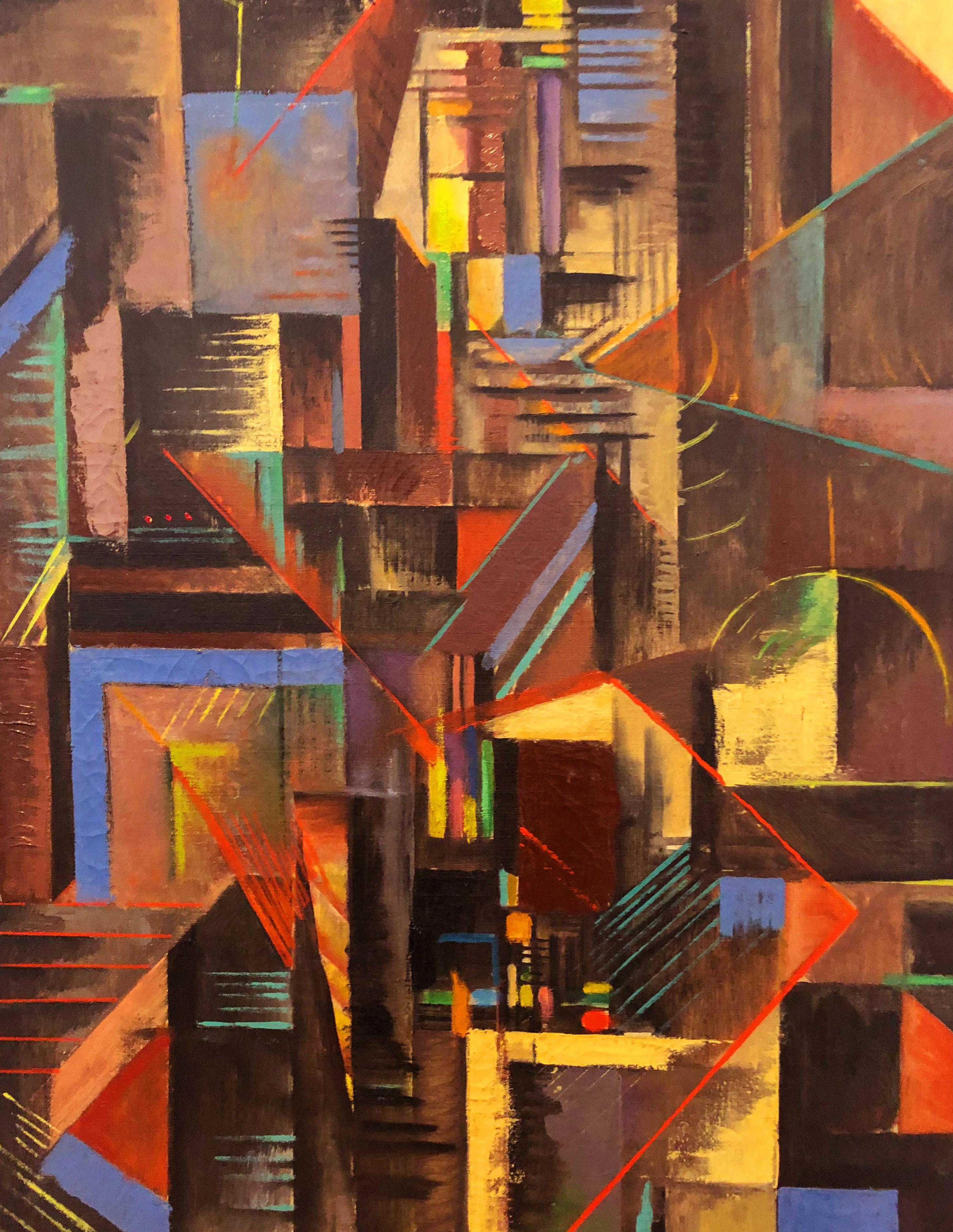features compositions of solid shapes on canvases, paper, prints, and occasionally murals. She has a background in law, but she got into painting towards the beginning of the pandemic.