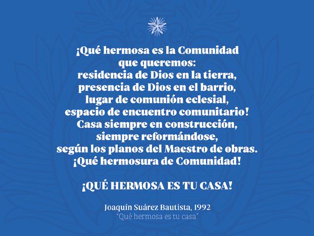 manera, ya que los nuevos caminos ordenados por el 46.º Capítulo General parecían ciertamente abrumadores. La primera semana de junio, ya estaba de vuelta en Roma. Salvo Carlos, nuestro Vicario General, todos los demás Consejeros Generales elegidos seguían ocupados en la transición de las tareas pendientes a algún involuntario Simón de Cirene. La comunidad siempre ha sido acogedora y fraterna, aunque la estructura de la casa siga pareciendo fría e imponente. Siempre es un lugar entrañable para visitar, pero intimidante para llamarlo “hogar”, ¡al menos por ahora! Me gusta esta cita de nuestra Regla que está plasmada en una pared de nuestro centro Guausa en Bogotá: “La comunidad es el hogar de los Hermanos”. ¿Debo esperar llegar a un lugar nuevo que uno sienta como ‘hogar’? ¿Por qué debería esperar que los que ya estaban allí antes se responsabilicen de sentar las bases para crear ese sentido de ‘hogar’? Podría poner un poco de mi parte para que incluso los miembros más veteranos sintieran que éste es su hogar. ¿Debería intentar limpiar un rincón oscuro de la casa y hacerlo más acogedor? Podría intentar cocinar un plato casero filipino y permitir a algunos aventureros probar mi experimento culinario. También podemos poner nuestro granito de arena para que el año nuevo sea un poco mejor para un hermano o una hermana.