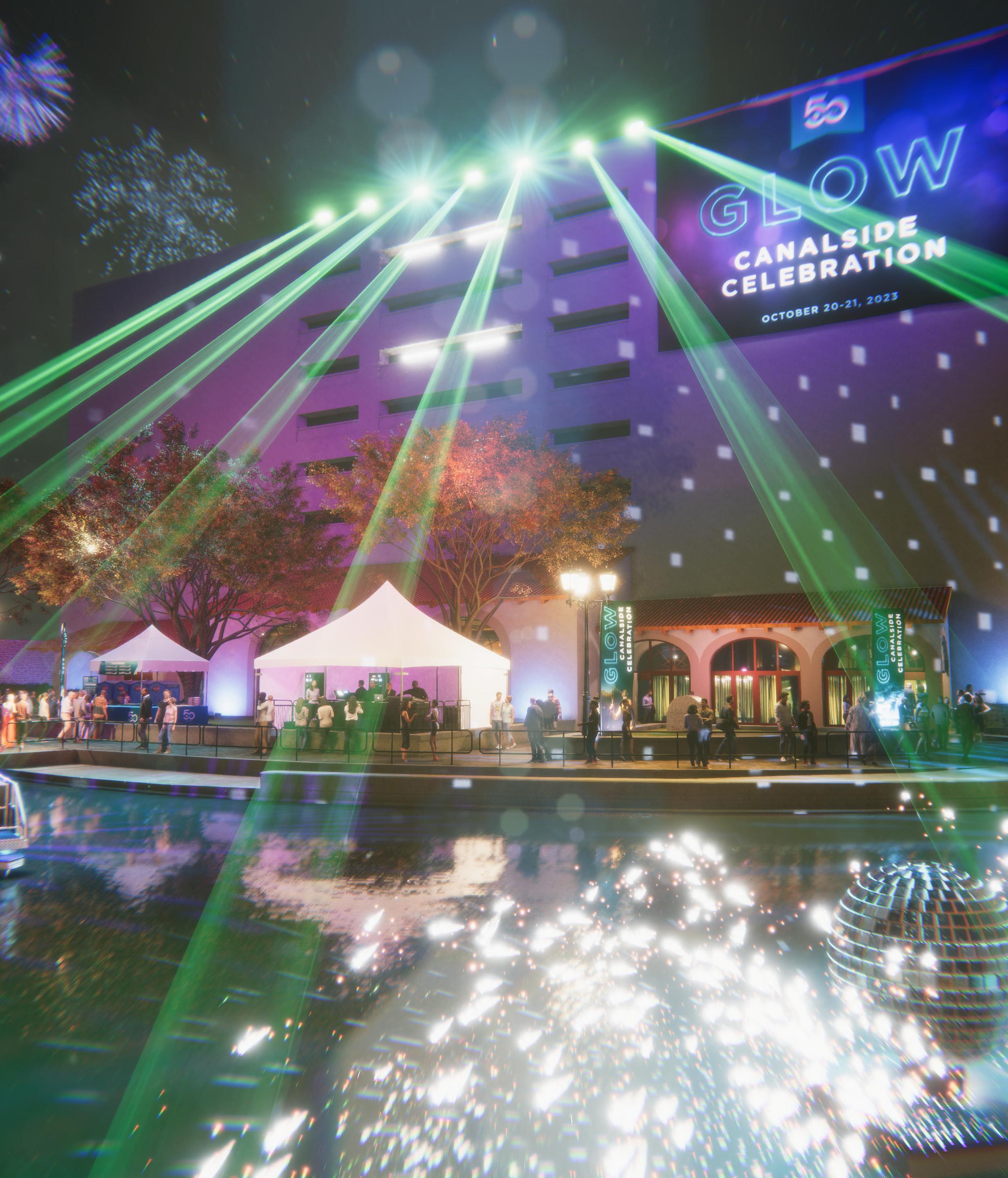GLOW takes place along the Mandalay Canal and accessible from E. Las Colinas Blvd. Please be mindful, the canal was built to explore on foot. Stairs are plentiful, uneven walkways are common and ADA access is extremely limited.