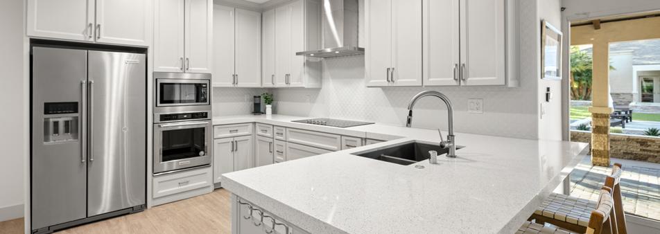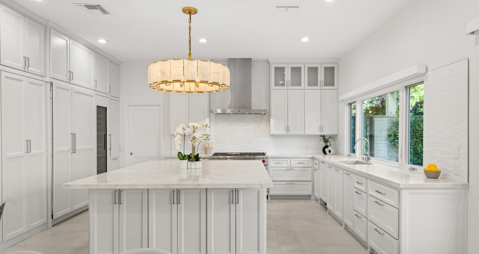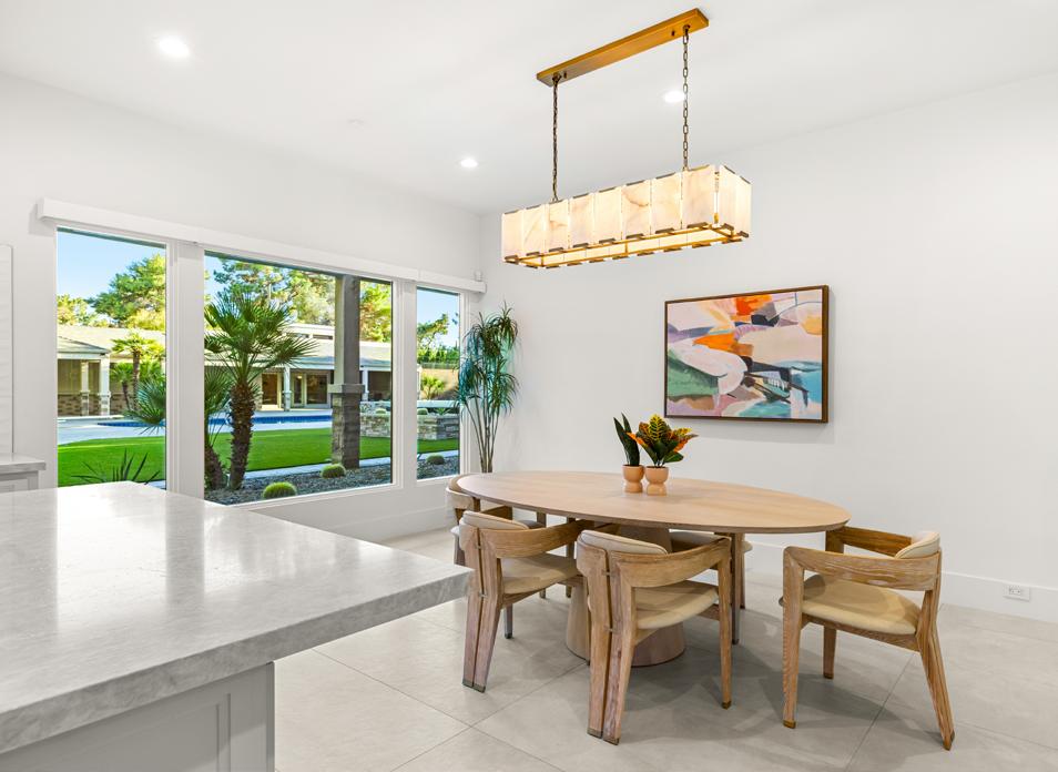 The heart of this home is the chef’s kitchen, featuring top-of-the-line Wolf and Subzero appliances, a striking marble island, and custom cabinetry. Whether you’re hosting a lavish dinner party or enjoying a quiet breakfast, this kitchen is both functional and beautiful.
