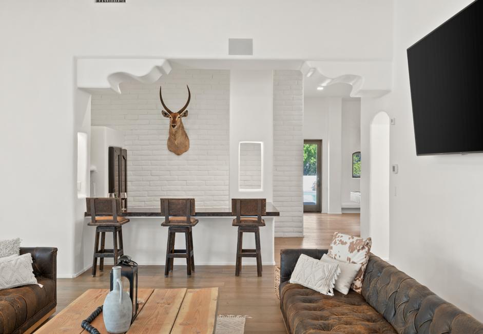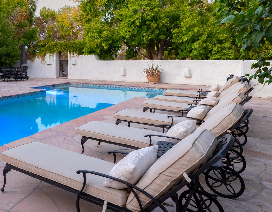 Welcome to an unparalleled equestrian paradise nestled on nearly 10 acres of lush, park-like grounds in the heart of Las Vegas. This exceptional estate at 7330 North Rainbow Boulevard is a rare gem, designed by the renowned Bill Tull, famous for his iconic Santa Fe style. This property boasts a harmonious blend of luxury, functionality, and timeless Southwestern charm.