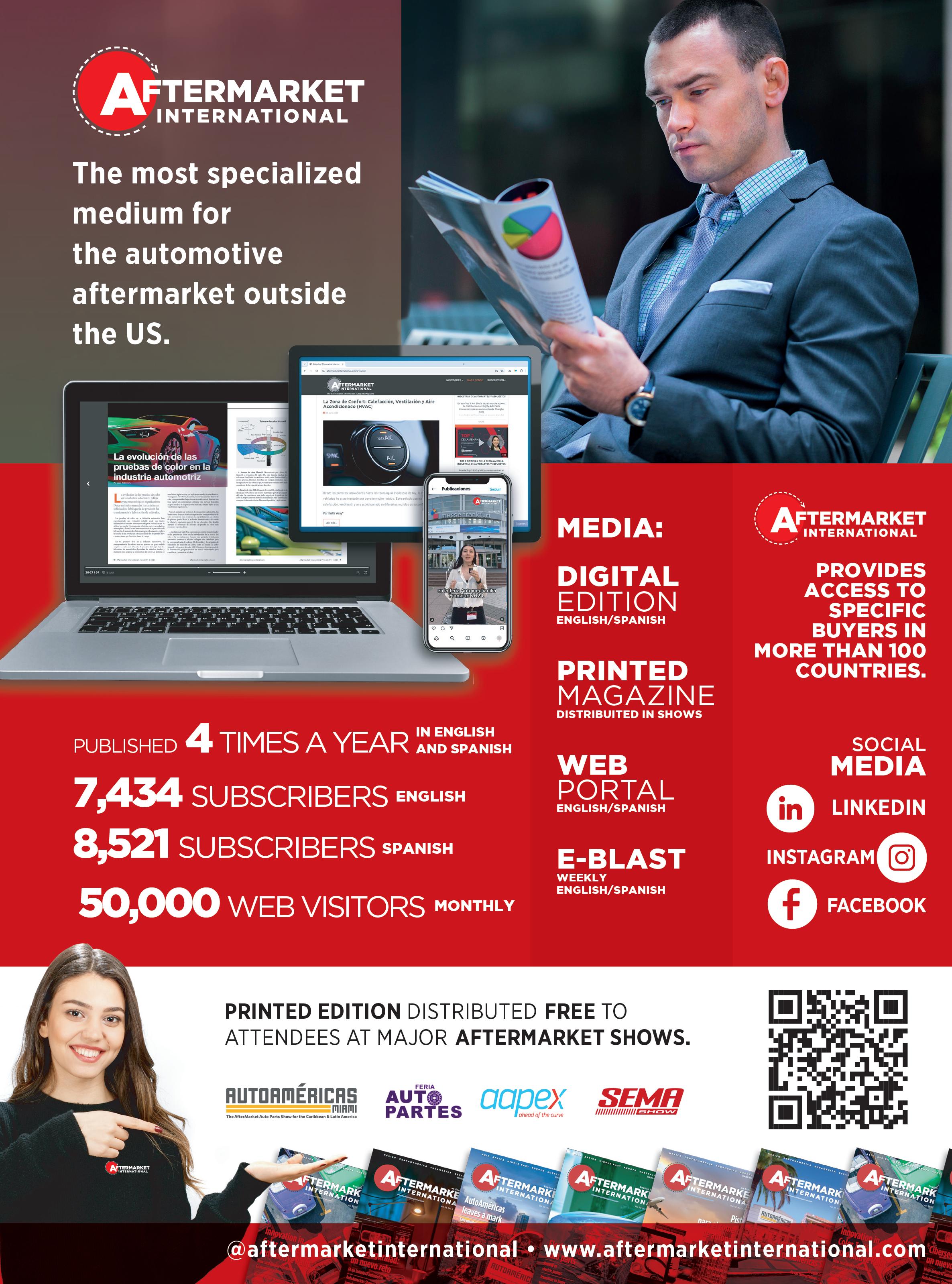 For advertising, contact Brad Glazer at 216 233-6943 bglazer@aftermarketinternational.como Andrés Caballero al +1 [305] 285 3133 Ext. 94 acaballero@aftermarketinternational.com