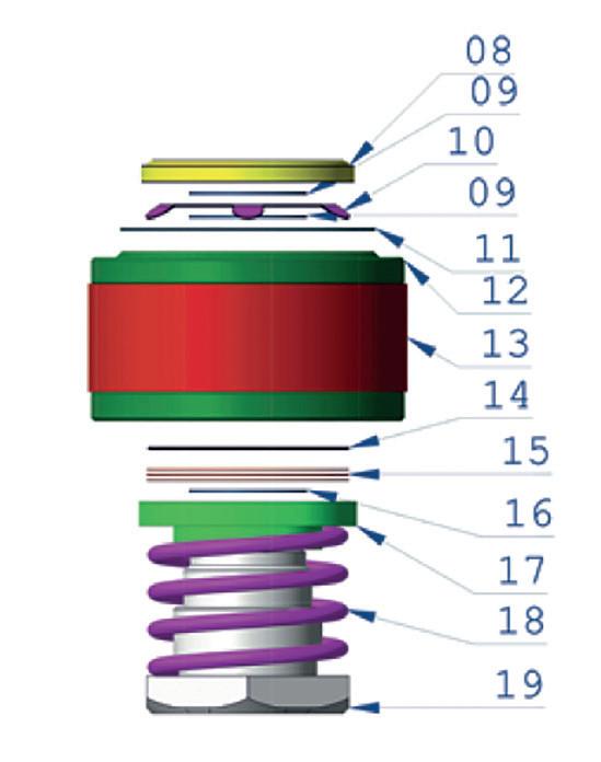 1. a threaded ring (green) 02-207 with an M47.80x1.00 pitch that closes the shock absorber by pressing on it;