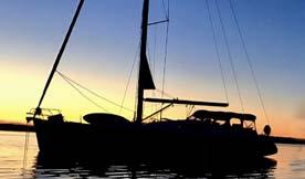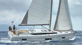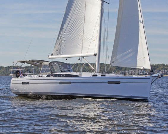 Luna is a beautiful sailboat – a modern, practical and fast cruising yacht. This Hanse 455 was built to rigorous standards in Greifswald, Germany on the North Sea and designed by top naval architects Judel/Vrolijk. Her threecabin, two-head layout ofers space for entertaining and privacy. Handling the Hanse 455 is simple. Flat decks surround a large secure cockpit, where all sail controls and halyards are led aft to two electric winches just forward of each helm station. The combination of the stock self-tacking jib and Germanstyle main sheet system allows the helmsperson to trim from either side while under sail. Single-line reefng makes mainsail handling a snap when the