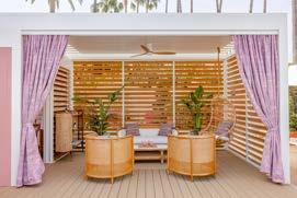 Art is central to Mondrian's ethos of creating spaces thatreflectcultureandcelebrateaglobalcommunity ofinnovatorsandthoughtleaders.In2024,guestscan expect an expertly curated program of events connecting island creators. The rooms at Mondrian Ibizaaredesignedwithrefinedsimplicity,usinglocal raw materials reimagined in new forms—wood, leather, linen, stone, and cement. Signature pieces such as intertwined natural leather webbing headboards and wooden slat cabinets draw inspirationfromtraditionalBalearicfurnishings.
