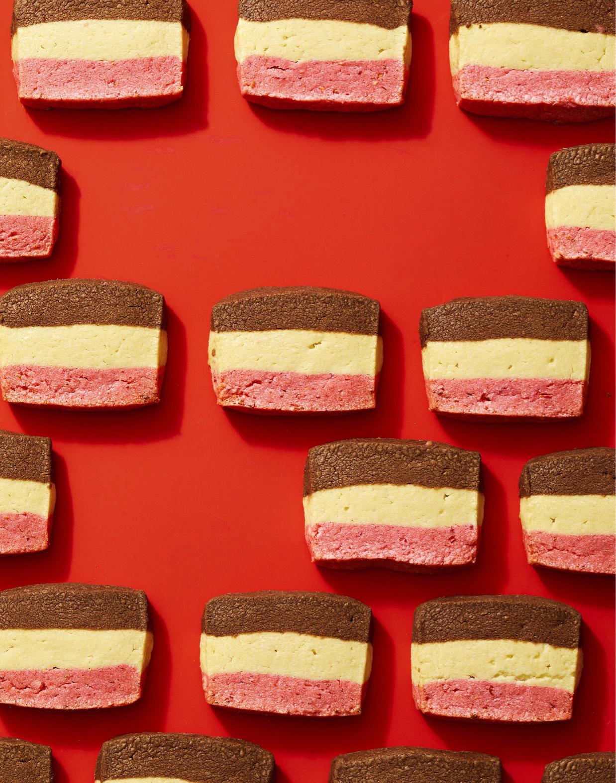 prevent sticking Spread with 1⁄4 cup jam, then sprinkle with 1⁄4 cup walnuts and half of remaining spiced sugar Starting from 1 longer side, gently roll up dough into a tight log and transfer to prepared baking sheet Freeze until completely firm, at least 30 min Repeat with remaining dough, jam, walnuts and spiced sugar