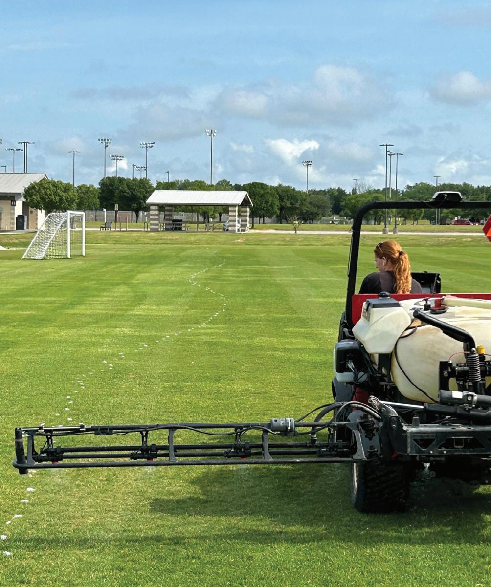 The authors wish to extend their gratitude to the Texas Turfgrass, Research, Education, and Extension Endowment for providing funding for this study. They also want to express their thanks to GLK Turf Solutions and Traqnology for providing the Above Par Tech sprayer and real-time kinematic correction service, respectively, for use in the study. Additionally, appreciation goes to Stephan Richardson, the Parks Operations Manager of the City of College Station, Curtis Richmond, the Southwood Park Supervisor, Keith Fails, the Veterans Park Supervisor, and Ken Rost and Cam Schafer from Frost, Inc. for their support of this project.