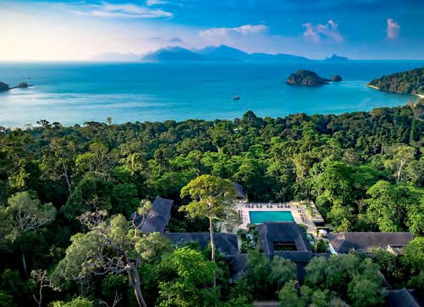 Im Herzen des ursprünglichen Regenwalds auf einer Anhöhe gelegen, ist das zu den „Leading Hotels of the World“ gehörende „The Datai“ ein wunderbarer Rückzugsort für Kunden, die besondere Umgebungen zu schätzen wissen. Das einsame Tropenparadies bietet auf gut 280.000 Quadratmetern viel Privatsphäre und Natur pur. Über einen wunderschönen Pfad, begleitet von den Geräuschen des Dschungels, erreicht man den herrlichen Strand und das Andamanische Meer. Die 110 elegant eingerichteten Zimmer, Suiten und Villen harmonieren wohltuend mit der natürlichen Umgebung des Resorts. Kulinarisch verwöhnen fünf Restaurants und Bars die Gäste. Zwei Pools laden zum Baden und Entspannen ein. Am Privatstrand können verschiedene Wassersportarten ausgeübt werden. Um die Insel kennenzulernen, eignen sich Nature Walks und Jungle Trekking bestens.