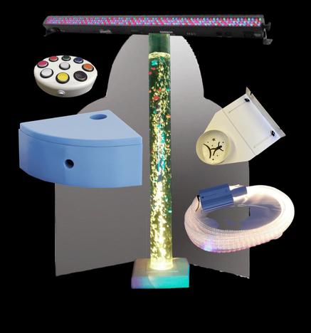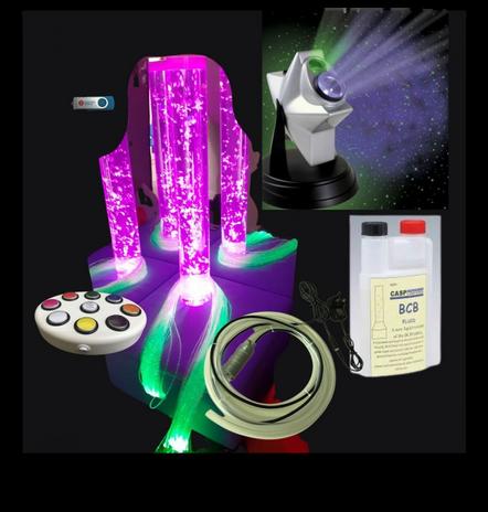 1.8mBubbleTube 15cmBubbleTubeWallBracket Fibreoptics100Tailsx2mwithLightsource 8-buttonOvalController Plinth ColourWash Mirrorsx2 MoodCube Pump BCBLiquid Rhapsody InfinityTunnel BubbleWall
