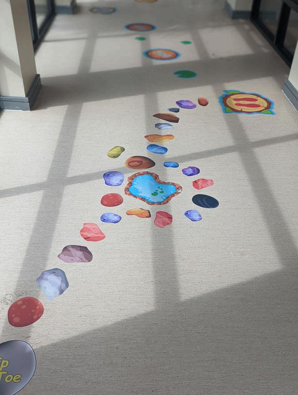 Ouramazingsensorypathsareaseriesofguidedmovementsforchildrentofollow,shownby picturesandgraphicimagesforboththegroundandwalls.Asthestudentsfollowthepathand completethemovements,theyworkoffexcessenergyanddeveloptheirgrossmotorskills.The LearningSpacePathalsoincorporatesasensoryexperience,helpingtodevelopandencouragenot onlybreathingtechniques,pausemethodsbutalsomindfulthinking.