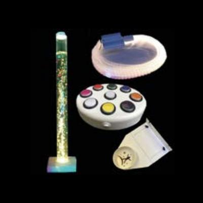 Fibreoptics100Tailsx2mwithLightsource 8-buttonOvalController Plinth Mirrorsx2 ColourWash