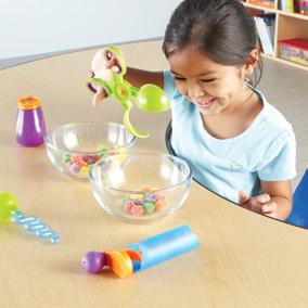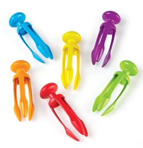 Young learners can get a grip on fine motor skills with these colourful chunky tweezers. Grooves guide the fingers into the pencil grip position to get little hands used to the feeling of holding a pencil to write, while also building muscle strength where it’s needed in little hands. Teachers can use these for a variety of activities including sorting and sensory bin fun. Tweezers store inside the storage tub with carrier handle. Packaging is multilingual. Tweezers measure 9cm L. 12 Pieces SMALL PARTS. Not for < 3 yrs