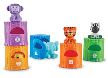 Explore hide-and-peek play with 5 friendly, colourful jungle animals in 5 stackable treehouses ready for counting, colour, and fine motor fun, as well as lots of imaginative play. There is a monkey, lion, elephant, tiger and zebra. Features multilingual packaging and guide. Tree bases measure approx. 8cm H x 7cm W. 10 Piece Set