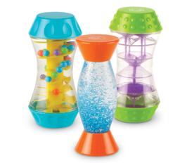Explore the sights, sounds, and textures of these flippable sensory fidget tubes. Children build essential fine motor and sensory skills every time they fidget with the Sensory Trio Fidget Tubes from Learning Resources. Each sensory tube in this fidget toy pack engages a different sense through fun hands-on play - listen to falling beads as they tumble down the tube, watch the swirl of glitter to spot the hidden smiley faces, or feel the weight of falling sand as it cascades from one end to the other. The sensory fun doesn’t stop there - features including a twist-and-click and fun grabbable textures ensure that kids stay engaged while they build sensory and fine motor skills. Sized just right for little hands, the Sensory Trio Fidget Tubes are ready for fidget fun at home or on the go - keep these kids’ sensory toys in the playroom for breaks, or stash them in the car for on-the-road fidgeting. Features multilingual packaging. 3 Piece Set