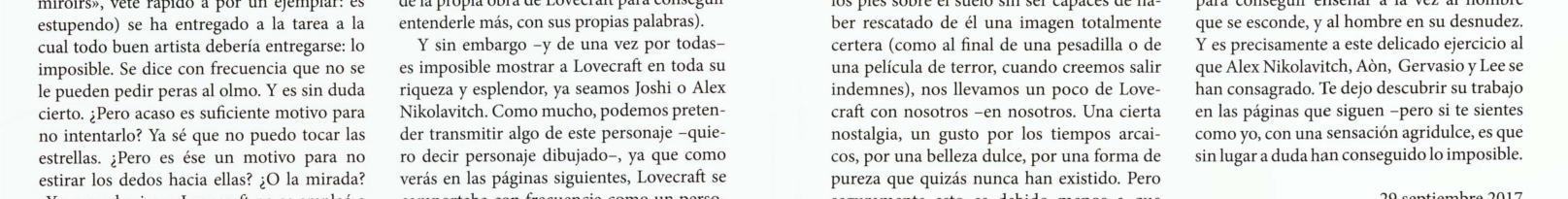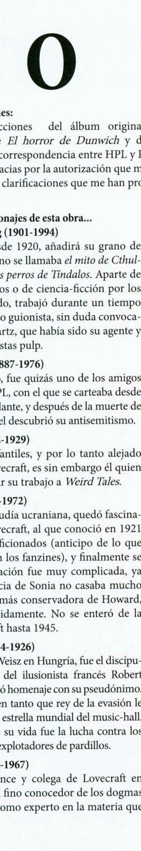 Creador del mito de Cthulhu, de Arkham y del siniestro Necronomicón, autor de múltiples obras maestras de la literatura de terror, Howard Phillips Lovecraft está considerado uno de los escritores más influyentes de su siglo. Prisionero de su propio mito, proyecta también sobre sus innombrables lectores la imagen de un ermitaño fuera del mundo, con una personalidad difícil de definir.