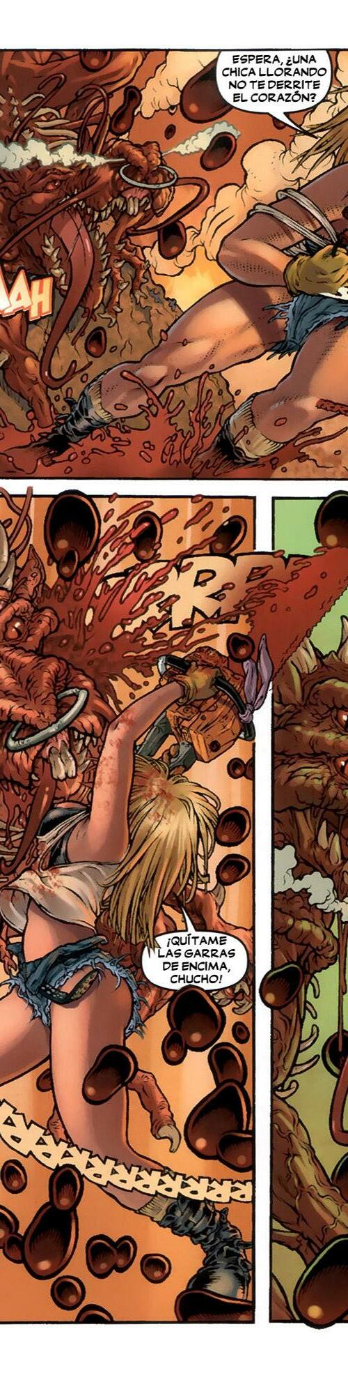 Nancy in Hell nació como un homenaje gamberro a esas obras de "serie B" que tan buenos ratos nos han hecho pasar. Ciertamente la premisa de una animadora armada con una motosierra atrapada en el Infierno da para uno de esos buenos ratos. Y el Infierno es uno de esos infiernos míticos del rock. Hay bares, hay cerveza, hay chicas bailando sobre las mesas. Hay tipos malencarados que fuman, beben y blanden armas automáticas mientras soban a chicas neumáticas. La música la suponemos terriblemente alta. Y entonces todo se derrumba. Nancy tendrá que viajar desde los Abismos del Malebolgia hasta las Puertas del Infierno, abriéndose camino por entre todas las criaturas que pueblan este reino.