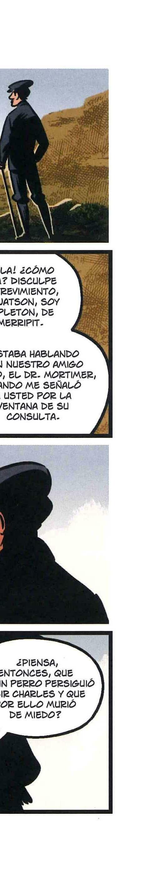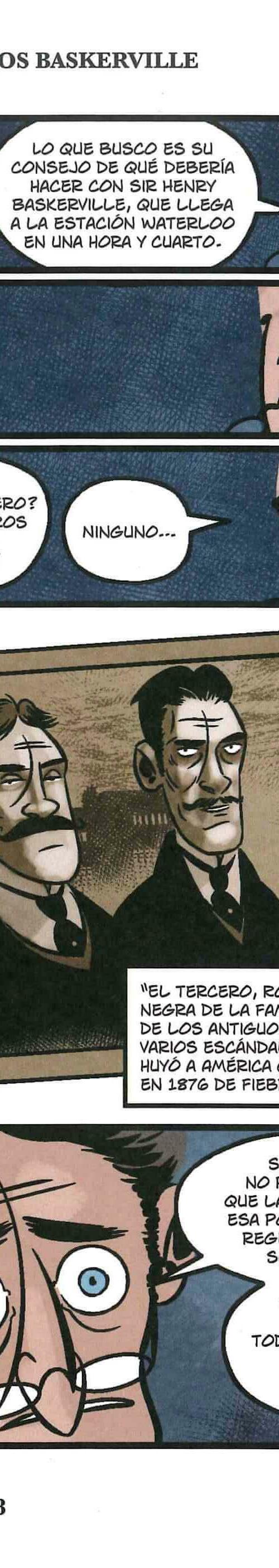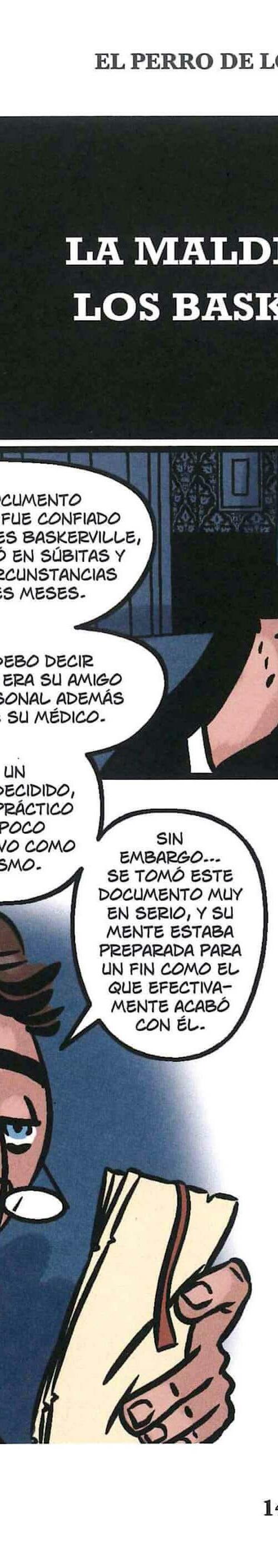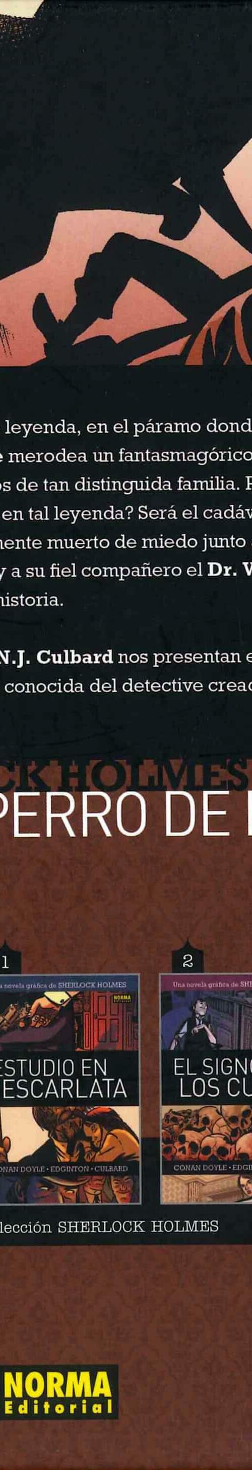 Según una terrible leyenda, en el páramo donde se encuentra la hacienda de los Baskerville merodea un fantasmagórico perro decidido a acabar con todos los miembros de tan distinguida familia. Pero, en tiempos de ciencia, ¿quién iba a creer en tal leyenda? Será el cadáver de Sir Charles Baskerville, hallado aparentemente muerto de miedo junto a una huella de perro, lo que llevará a Holmes y a su fiel compañero el Dr. Watson a descubrir qué hay tras tan fantástica historia. Ian Edginton e I.N.J. Culbard nos presentan en cómic la que posiblemente sea la historia más conocida del detective creado por Arthur Conan Doyle.