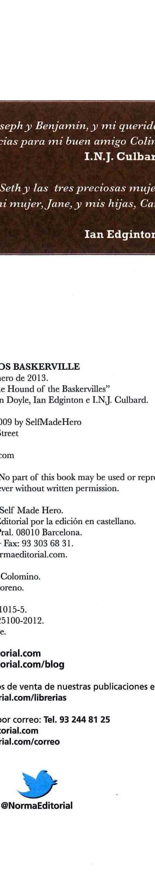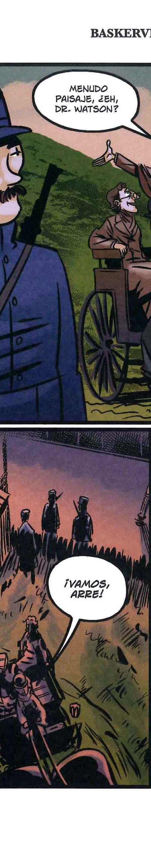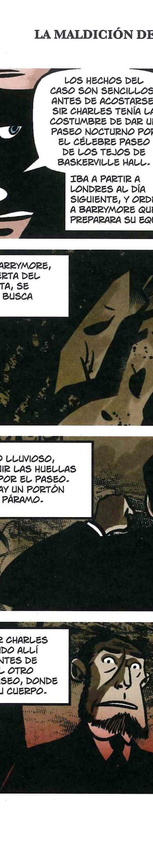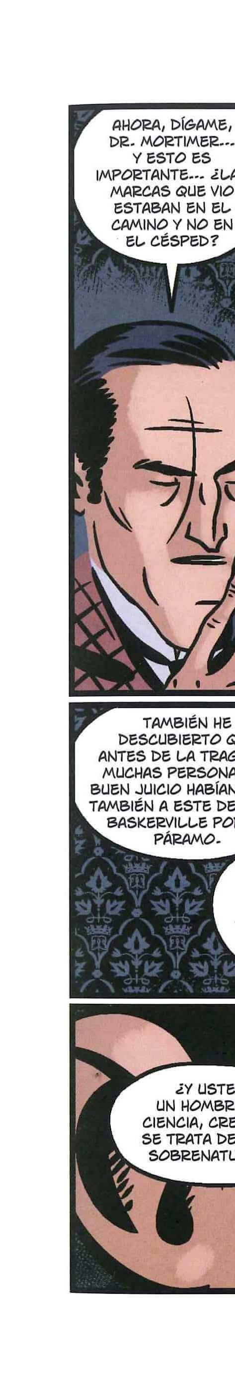Según una terrible leyenda, en el páramo donde se encuentra la hacienda de los Baskerville merodea un fantasmagórico perro decidido a acabar con todos los miembros de tan distinguida familia. Pero, en tiempos de ciencia, ¿quién iba a creer en tal leyenda? Será el cadáver de Sir Charles Baskerville, hallado aparentemente muerto de miedo junto a una huella de perro, lo que llevará a Holmes y a su fiel compañero el Dr. Watson a descubrir qué hay tras tan fantástica historia. Ian Edginton e I.N.J. Culbard nos presentan en cómic la que posiblemente sea la historia más conocida del detective creado por Arthur Conan Doyle.