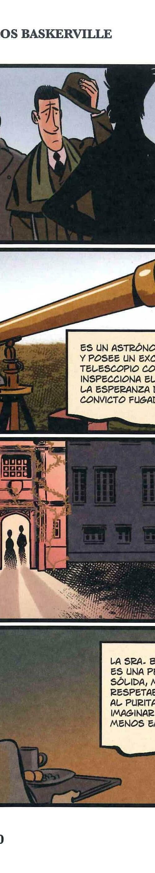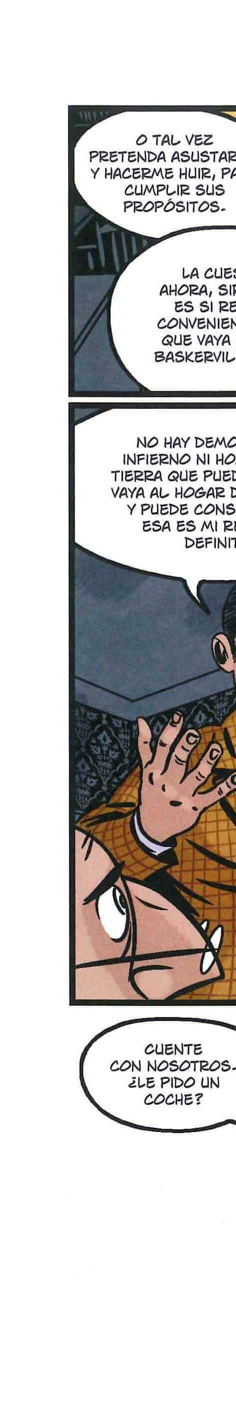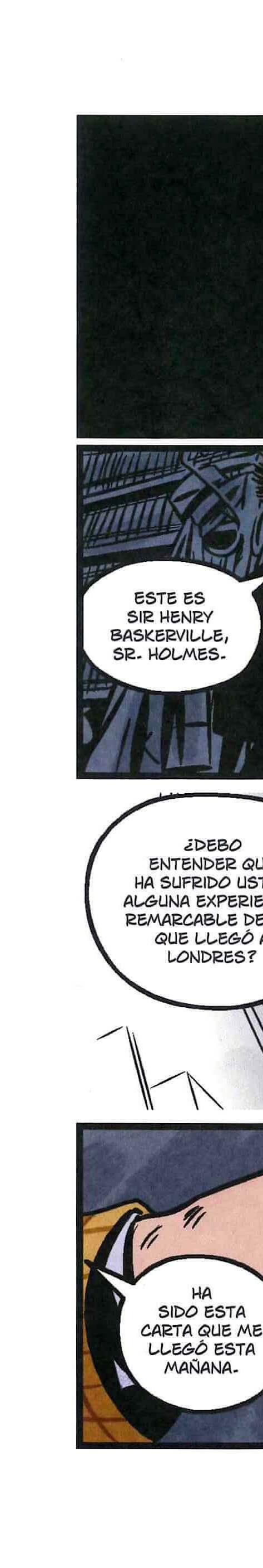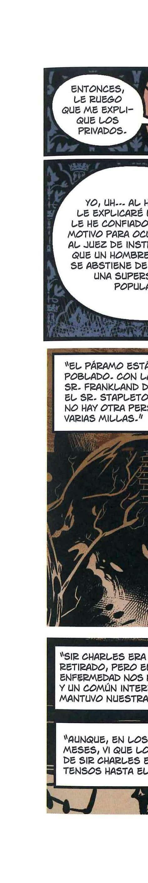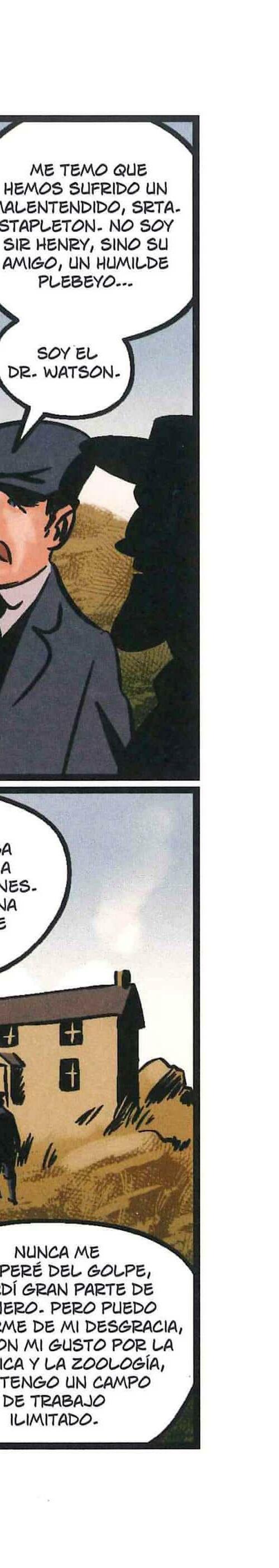 Según una terrible leyenda, en el páramo donde se encuentra la hacienda de los Baskerville merodea un fantasmagórico perro decidido a acabar con todos los miembros de tan distinguida familia. Pero, en tiempos de ciencia, ¿quién iba a creer en tal leyenda? Será el cadáver de Sir Charles Baskerville, hallado aparentemente muerto de miedo junto a una huella de perro, lo que llevará a Holmes y a su fiel compañero el Dr. Watson a descubrir qué hay tras tan fantástica historia. Ian Edginton e I.N.J. Culbard nos presentan en cómic la que posiblemente sea la historia más conocida del detective creado por Arthur Conan Doyle.