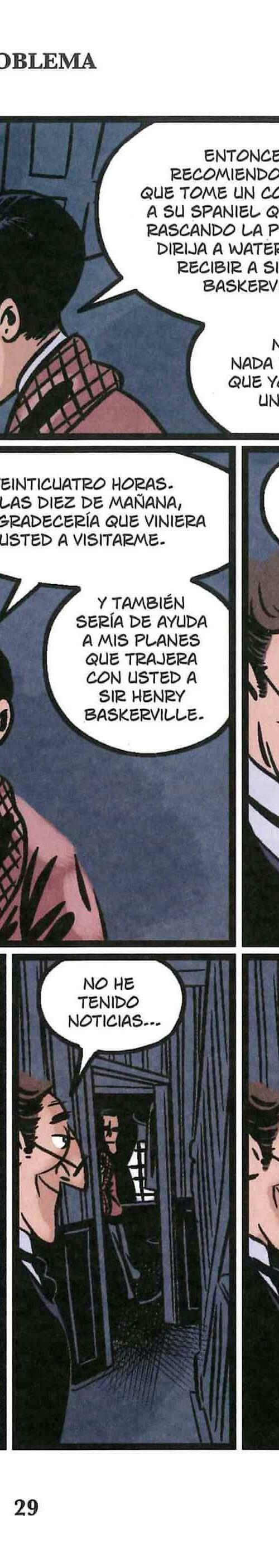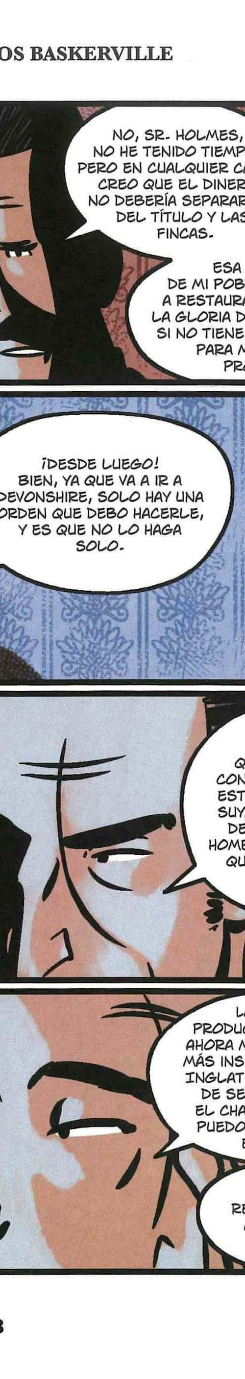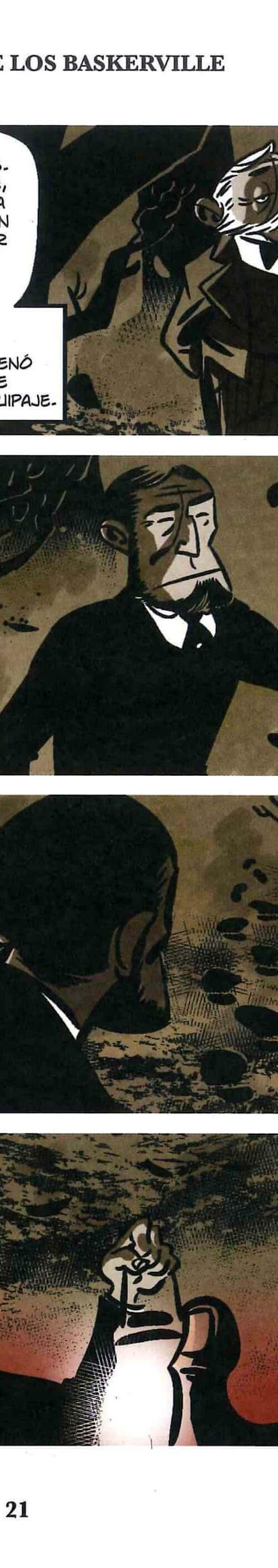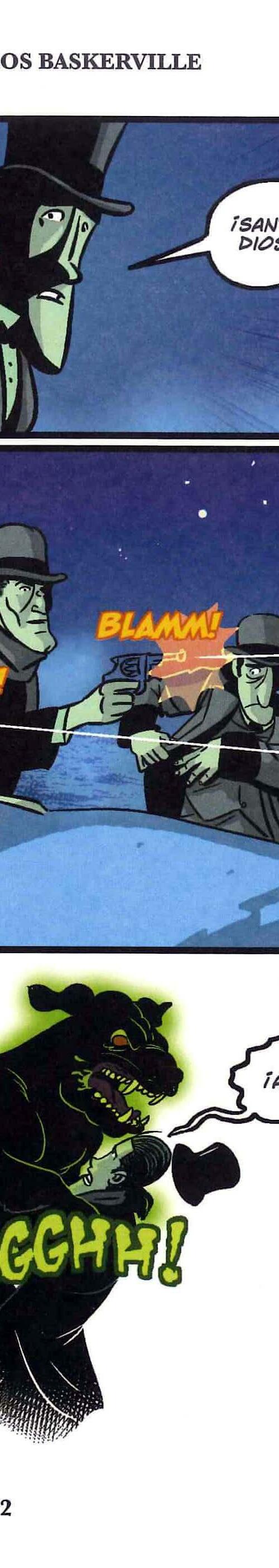 Según una terrible leyenda, en el páramo donde se encuentra la hacienda de los Baskerville merodea un fantasmagórico perro decidido a acabar con todos los miembros de tan distinguida familia. Pero, en tiempos de ciencia, ¿quién iba a creer en tal leyenda? Será el cadáver de Sir Charles Baskerville, hallado aparentemente muerto de miedo junto a una huella de perro, lo que llevará a Holmes y a su fiel compañero el Dr. Watson a descubrir qué hay tras tan fantástica historia. Ian Edginton e I.N.J. Culbard nos presentan en cómic la que posiblemente sea la historia más conocida del detective creado por Arthur Conan Doyle.