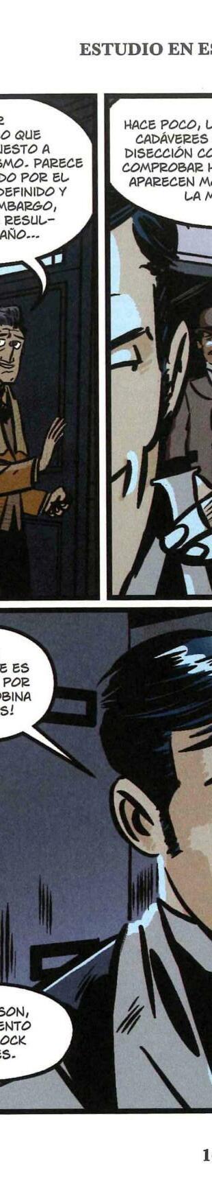 John Watson nunca podría haber imaginado que compartir un apartamento en Londres se convertiría en una serie de increíbles aventuras. Pero claro, no contaba con que su nuevo compañero, Sherlock Holmes, iba a ser una de las mentes más brillantes de Inglaterra y el único detective consultor del mundo. La persona idónea para desentrañar un misterioso asesinato. Estudio en escarlata es la primera obra de Sherlock Holmes que Arthur Conan Doyle escribió, y la primera en que tanto Watson como los lectores de la Gran Bretaña de finales del s.XIX fueron testigos de las habilidades deductivas de este gran personaje. Ahora, más de un siglo más tarde, Ian Edginton e I.N.J. Culbard nos vuelven a presentar esa historia como novela gráfica.