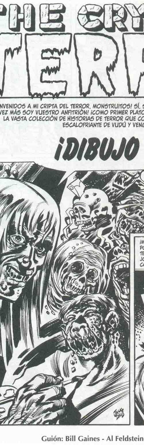 Tales from the Crypt fue una serie de antología de cómics de terror bimensual estadounidense publicada por EC Comics de 1950 a 1955, que produjo 27 números (el primer número con el título fue el n. ° 20, anteriormente había sido International Comics (n. ° 1–n. ° 5); International Crime Patrol (#6); Crime Patrol (#7–#16) y The Crypt of Terror (#17–#19) para un total de 46 números en la serie). Junto con sus títulos hermanos, The Haunt of Fear y The Vault of Horror, Tales from the Crypt era popular, pero a fines de la década de 1940 y principios de la de 1950, los libros de historietas fueron atacados por padres, clérigos, maestros de escuela y otras personas que creían que los libros contribuían a analfabetismo y delincuencia juvenil. En abril y junio de 1954, las audiencias del subcomité del Congreso muy publicitadas sobre los efectos de las historietas en los niños sacudieron a la industria. Con la posterior imposición de un Código de cómics altamente restrictivo, el editor de EC Comics, Bill Gaines, canceló