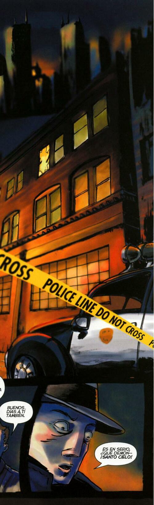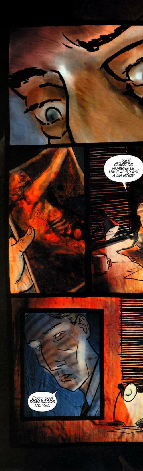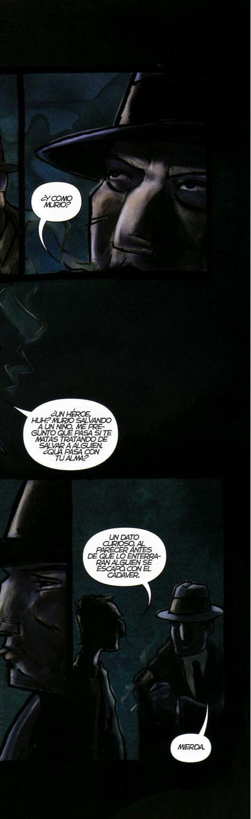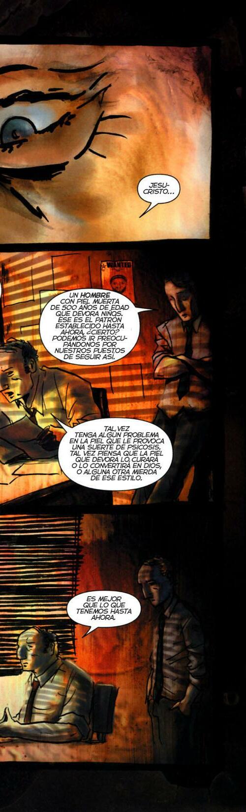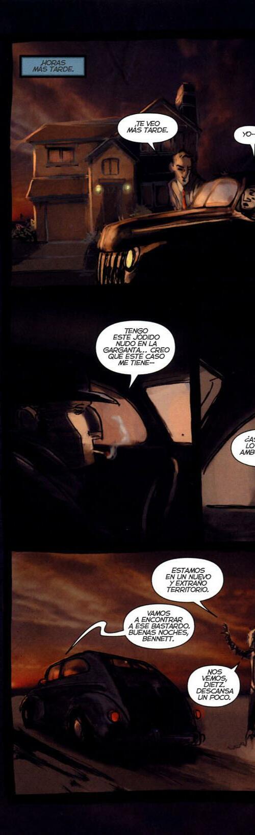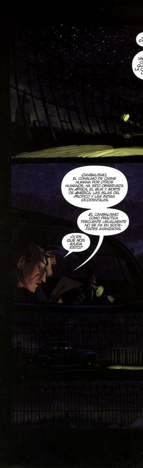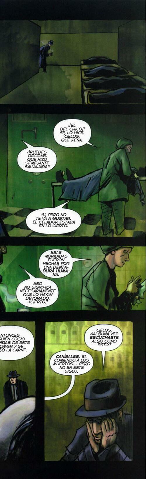 El guión de Steve Niles (Soy leyenda, Freaks of the Heartland) es bastante sencillo en su estructura, pero resulta tan evocador en sus elementos que llena las páginas de este cómic mucho más de lo que cabría esperar. En él tenemos a la pareja de policías veteranos con los clásicos problemas personales enfrentados a un caso especialmente macabro: el de un cadáver infantil parcialmente devorado. Y el retrato de la investigación -ambientada en los años 40, a juzgar por los coches y la estética de los personajes- es impecable.