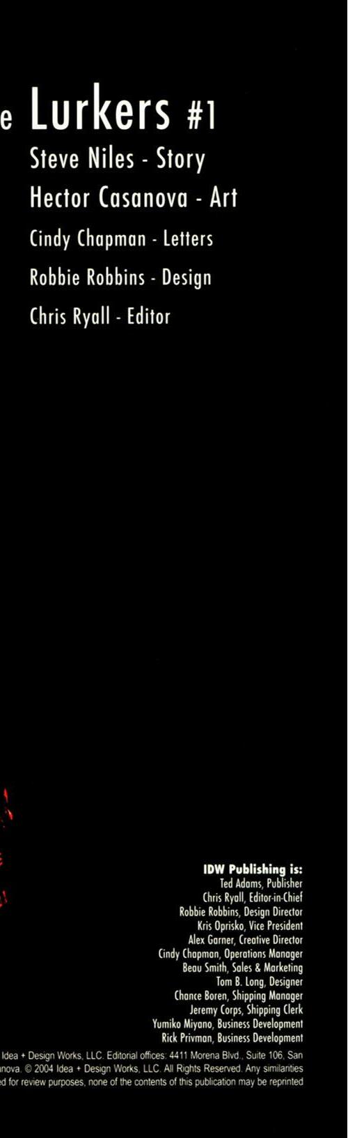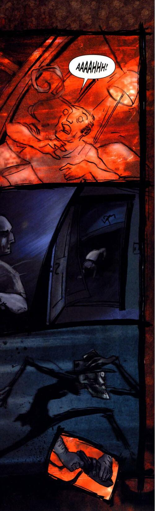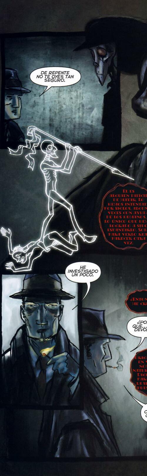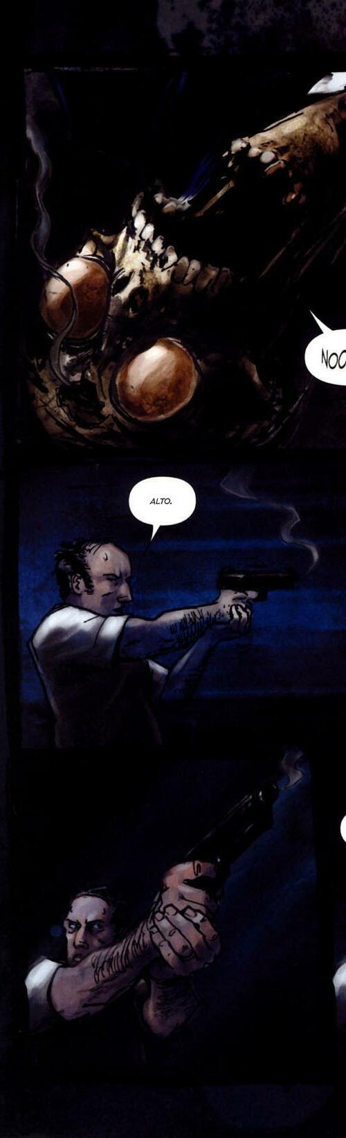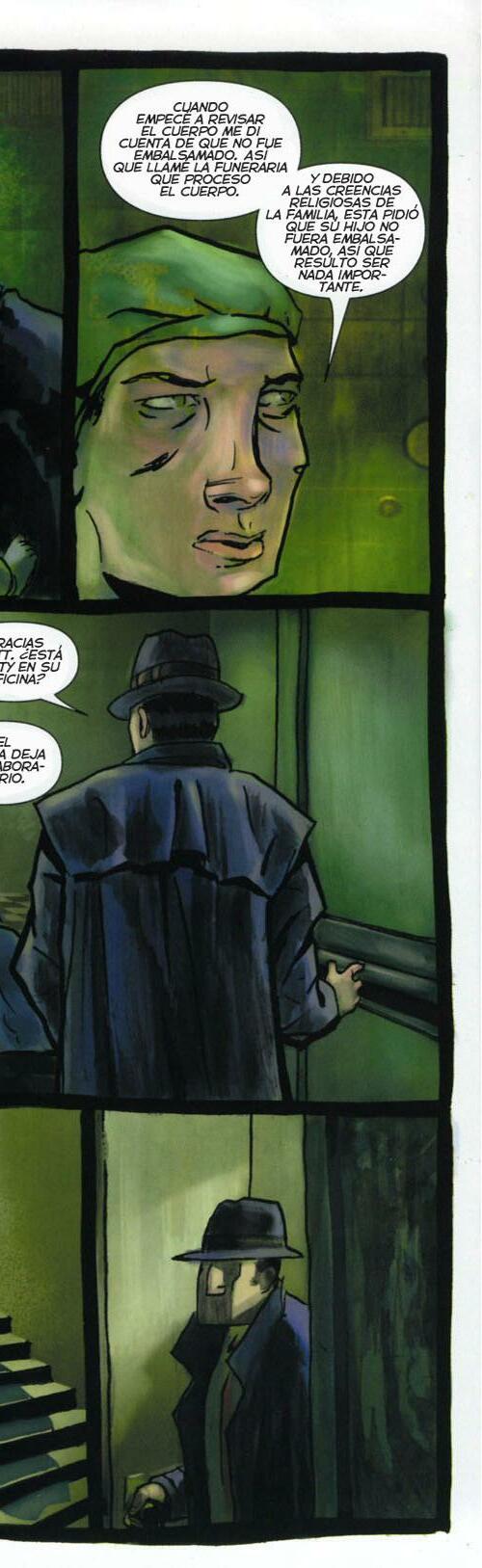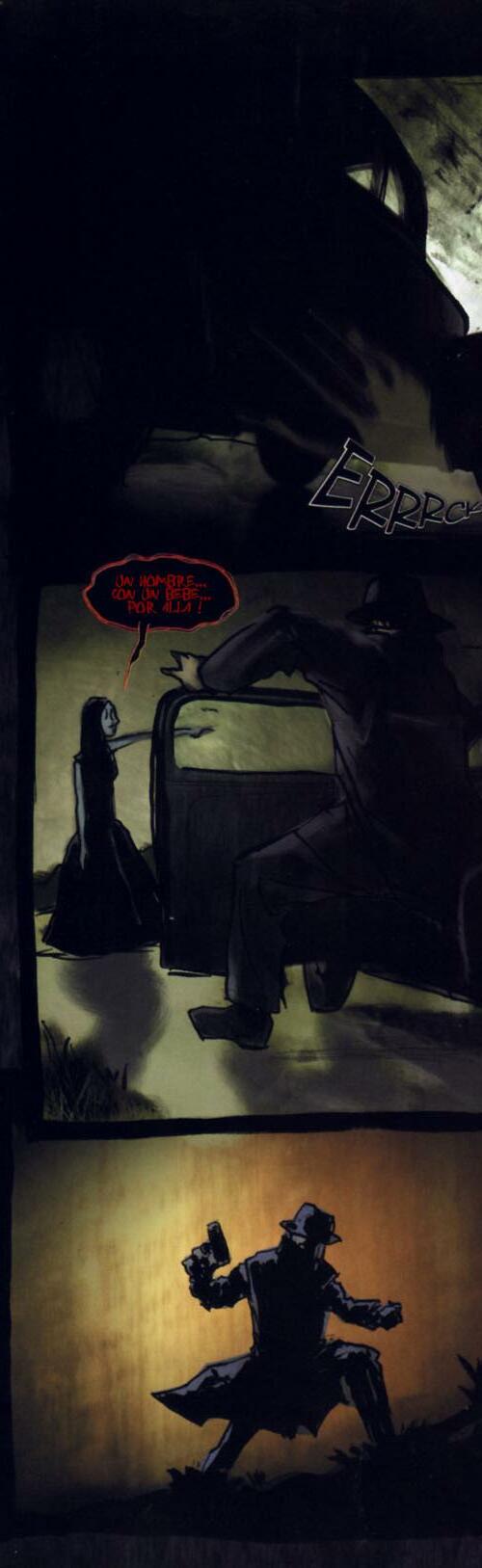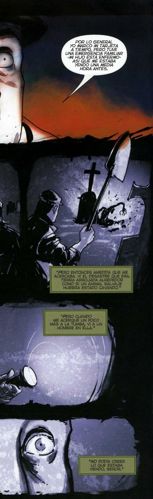 El guión de Steve Niles (Soy leyenda, Freaks of the Heartland) es bastante sencillo en su estructura, pero resulta tan evocador en sus elementos que llena las páginas de este cómic mucho más de lo que cabría esperar. En él tenemos a la pareja de policías veteranos con los clásicos problemas personales enfrentados a un caso especialmente macabro: el de un cadáver infantil parcialmente devorado. Y el retrato de la investigación -ambientada en los años 40, a juzgar por los coches y la estética de los personajes- es impecable.
