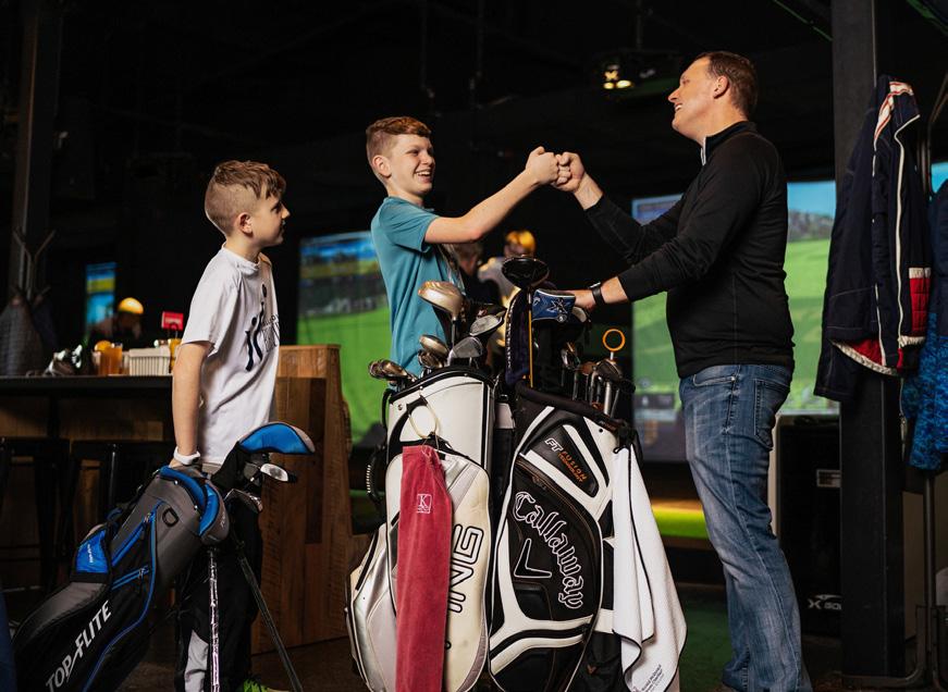 simulators are planned where players can work on their skills or play a round with friends on simulated golf courses around the world. One of the seven simulators can be set aside for private events, with its own gathering space and a curtain to separate it from the main facility. There will also be a small putting green and a cen-