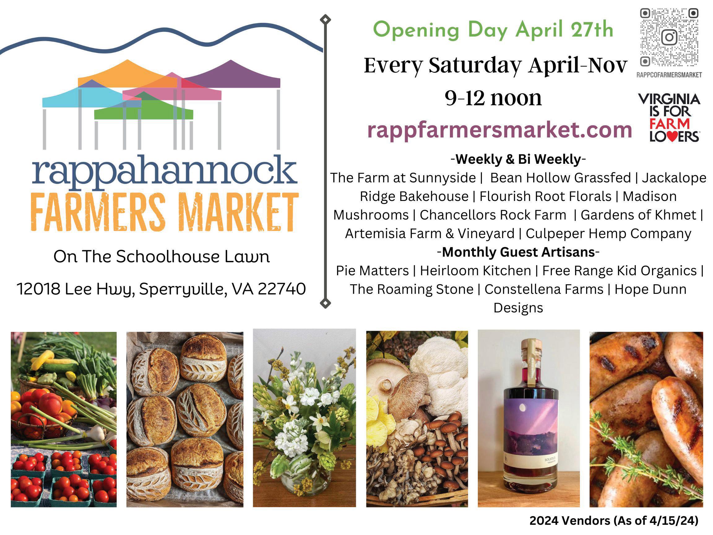9 a.m. - 12 p.m.: Rappahannock Farmers’ Market at The Schoolhouse/Golf Course
