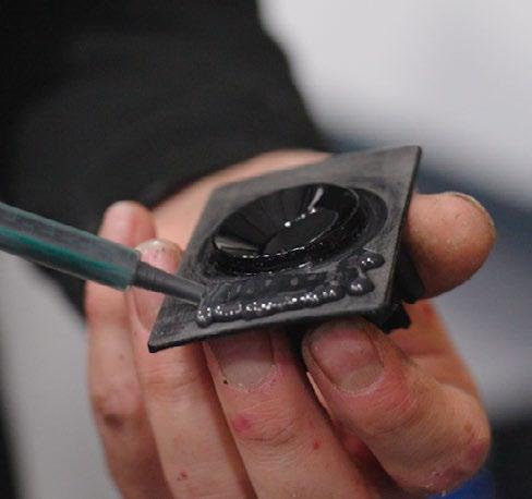 Testa placeringen för att säkerställa att de sitter bra, och använd tryckluft för att blåsa bort bråte och smuts. Applicera därefter lim på konsolerna och fäst dem på plats.