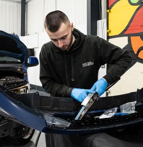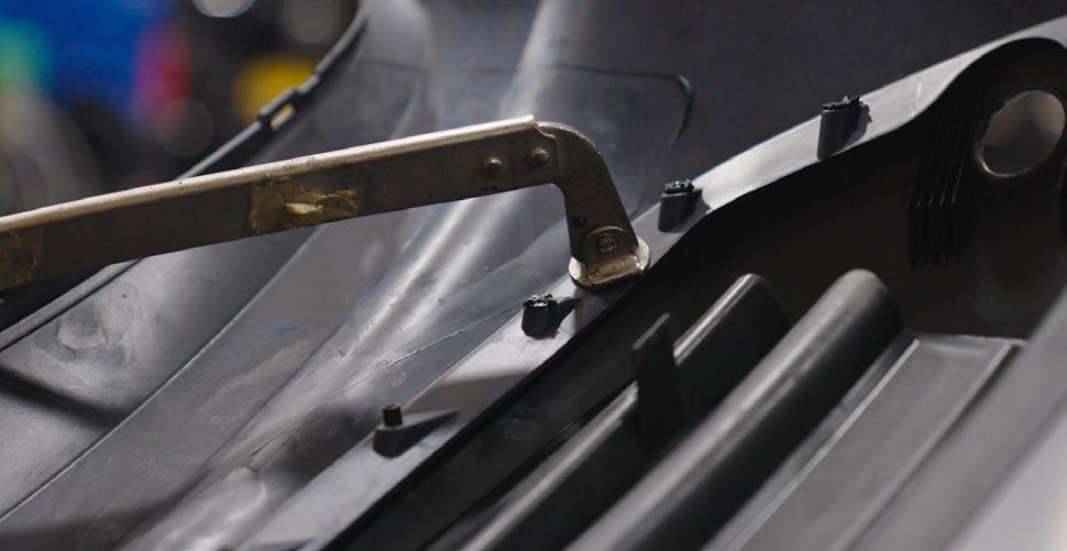 För att säkra den behöver flikarna smältas på plats, och klämmorna användas för att säkra den under smältningen. Flytta klämman i takt med att du arbetar längs stötfångaren.