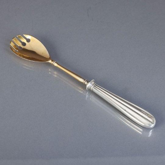 Em metal prateado, decoração relevada, pés na forma de patos, fuste “putti”. Sinais de uso, pequenas oxidações e pé amolgado. Dim.: 27 cm.