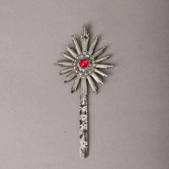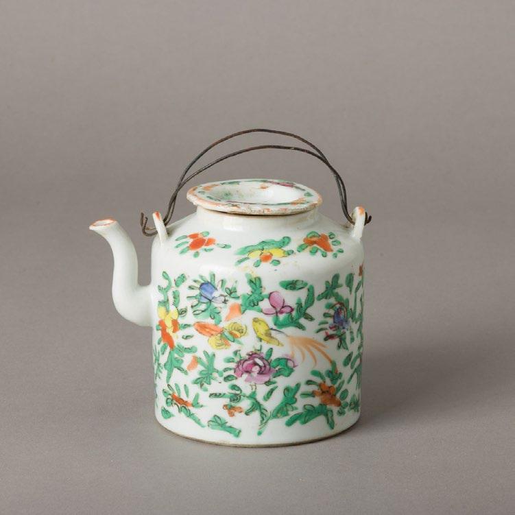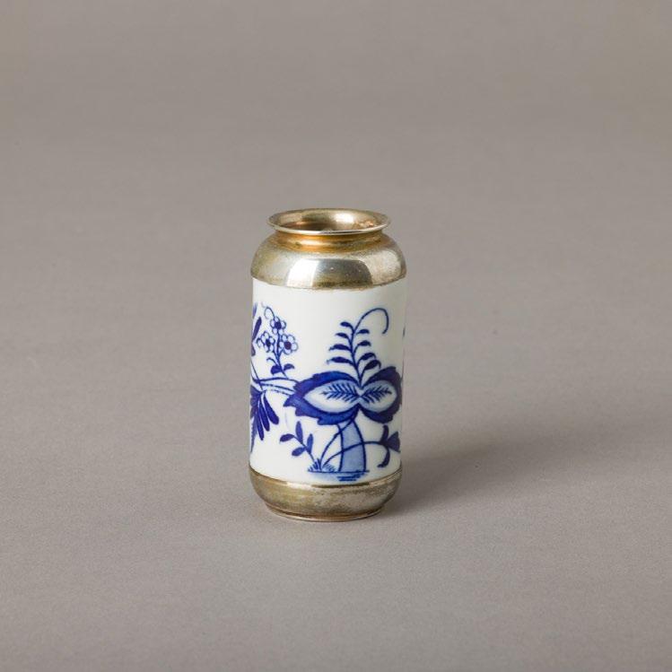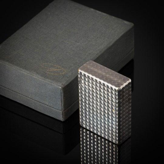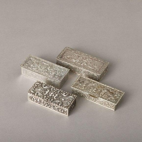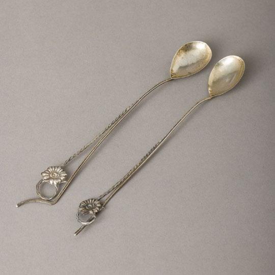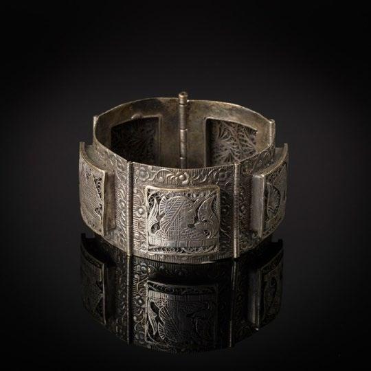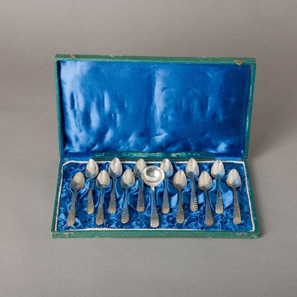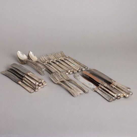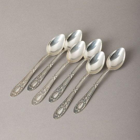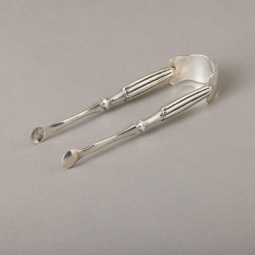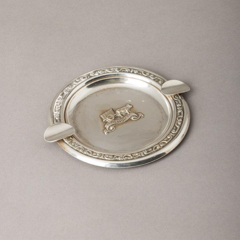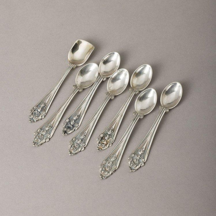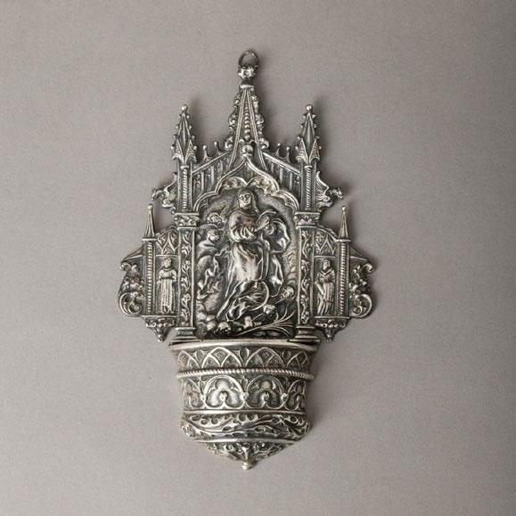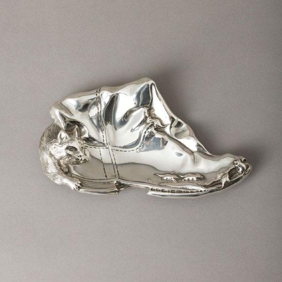 Em metal prateado, decorado com frisos perlados, pega amovível. Sinais de uso e leves pontos de oxidação.