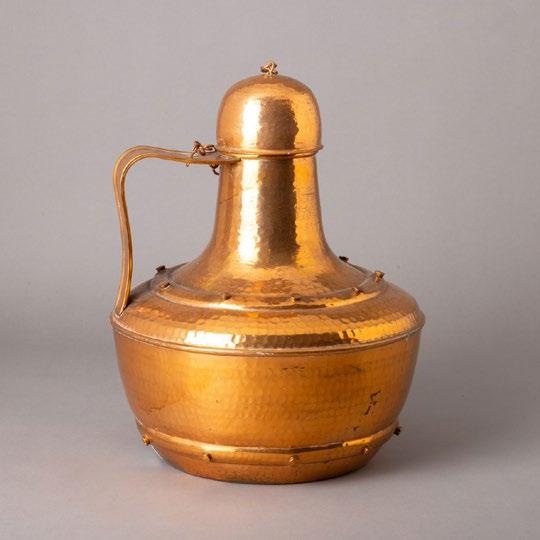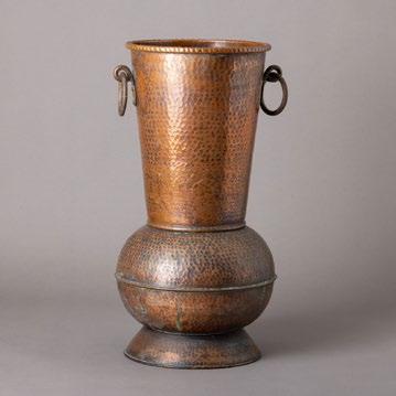 Em cobre e latão martelado, pegas com argolas. Sinais de uso, pequenas amolgadelas.