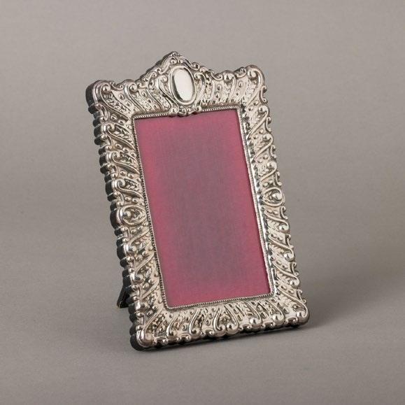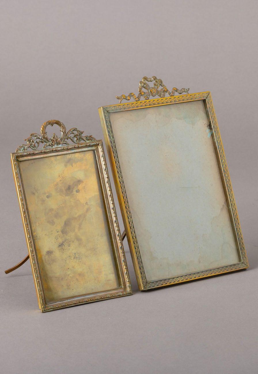 Molduras em metal amarelo, decoração relevada “laço” e “coroa”. Sinais de uso.