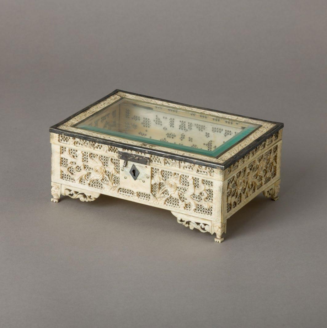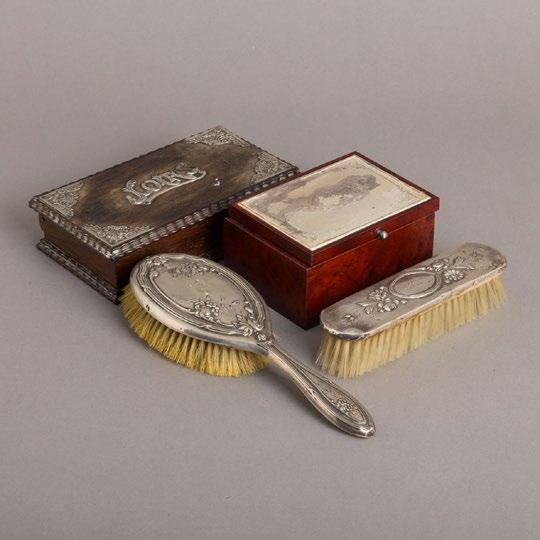 Em metal prateado, decoração vazada, fundos em madeira. Pequenos defeitos.