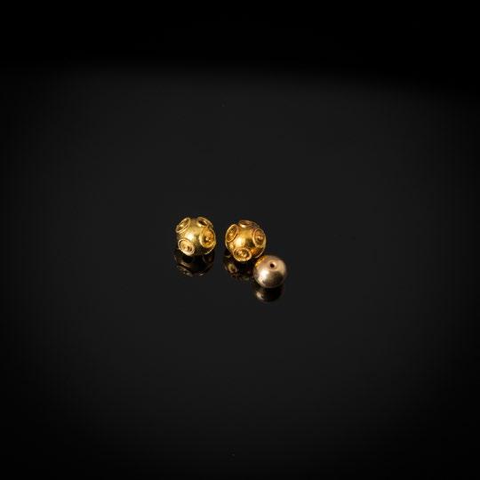 Em metal amarelo e liga de metal patinado, decoração relevada “elementos vegetalistas”. Um com restauro, amolgadelas e pequenos defeitos.