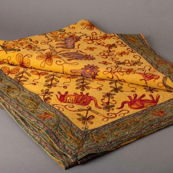 Bordado a fio de lã, decoração policromada “flores, animais e pássaros”. Defeitos e restauros.