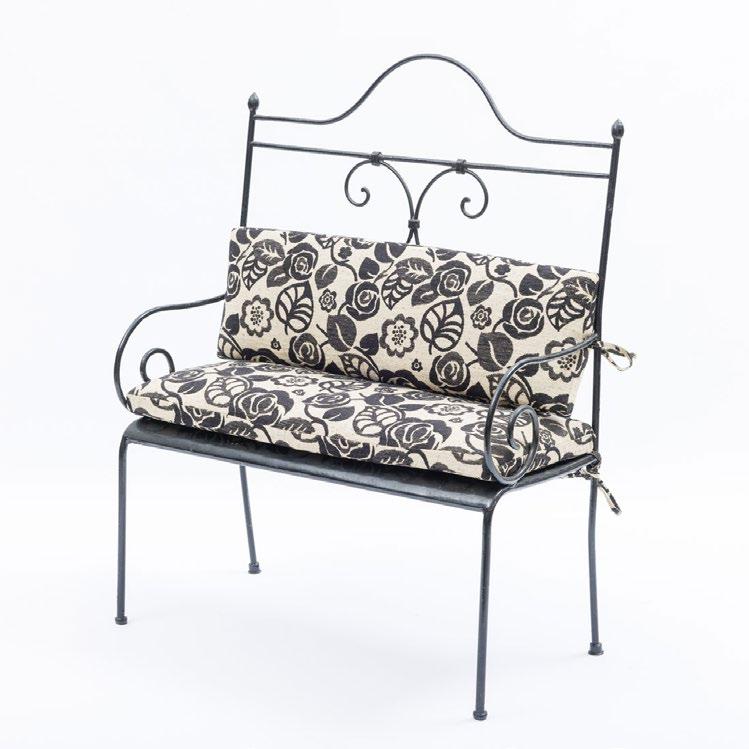 Em ferro pintado, decoração de enrolamentos, com duas almofadas. Pequenos defeitos.