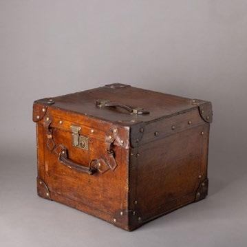 Em couro com pregaria, ferragens em metal. Sinais de uso, pequenos defeitos e falhas.
