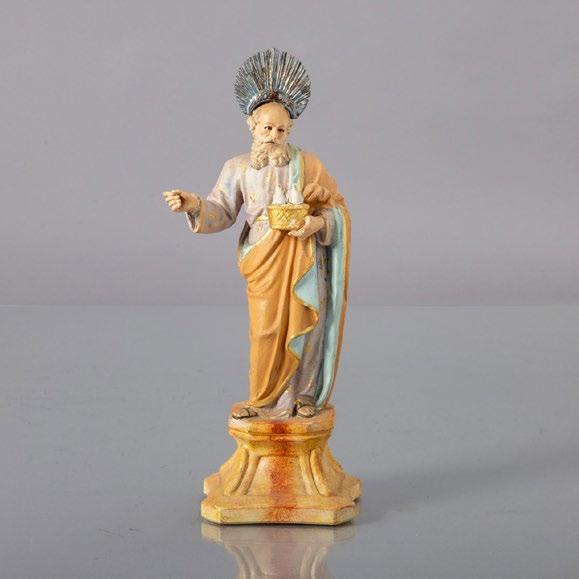 Escultura em porcelana moldada, decoração policromada e dourada. Europeia. Séc. XX. Sinais de uso, leva falha na base.