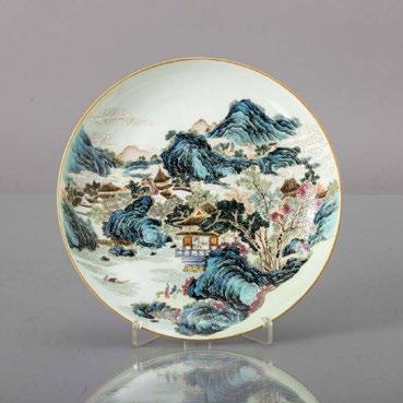 Em folha de metal pintado, decoração policromada e dourada “paisagem oriental com figuras”. Séc. XIX/XX. Falhas na pintura.