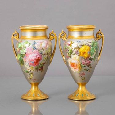 Em porcelana de Sevres, decoração relevada e dourada sobre fundo verde, elementos vegetalistas, reserva policromada “Cena Napoleónica” assinada Garnier. Marcada. Sinais de uso. Dim.: 54 cm.